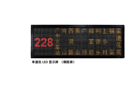 公交车作为城市重要的交通工具,数量庞大,线路繁多,公交车的现代化程度往往能够体现一个城市的现代化水平。传统的公交车一般采用静态灯箱等方式显示线路号、起点和终点等信息,一但固定就不可更改,缺少灵活性。单基色LED显示屏完成可以取代它们,通过中控器或者报站器对显示屏内容进行切换。单基色LED显示屏具有较高的稳定性和抗干扰能力,能够准确显示公交车线路信息、公益、商业广告信息发布,以及实现多国语言的信息显示