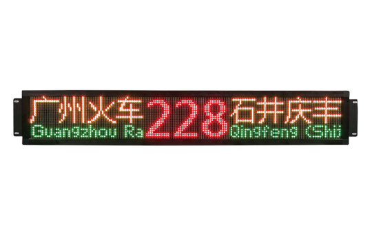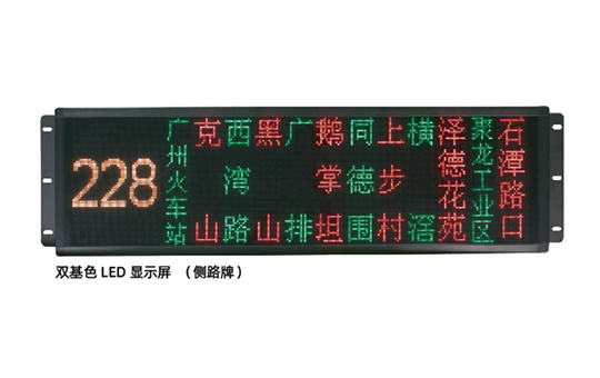 公交车作为城市重要的交通工具,数量庞大,线路繁多,公交车的现代化程度往往能够体现一个城市的现代化水平。传统的公交车一般采用静态灯箱等方式显示线路号、起点和终点等信息,一但固定就不可更改,缺少灵活性。双基色LED显示屏完成可以取代它们,通过中控器或者报站器对显示屏内容进行切换。双基色LED显示屏能够准确显示公交线路信息以及公益商业广告信息,实现多国语言信息显示。同时,双基色LED显示屏的显示方式更多,可以根据客户的实际需要显示不同颜色,总共有三种颜色可选择。
