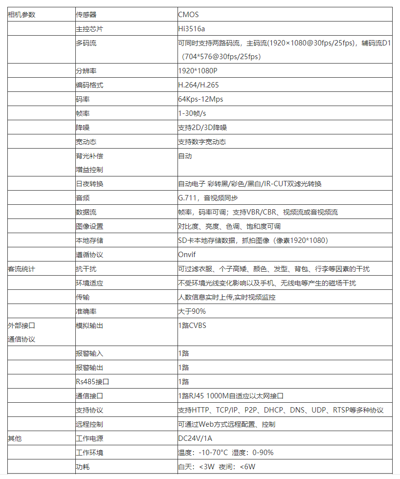 1.摄像头前端实现智能化,客流统计,人数信息实时上传;